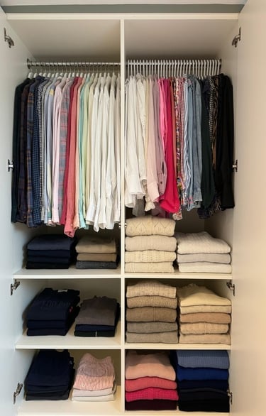 Whether your wardrobe is overflowing, hard to navigate, or simply not working for you anymore, I bring clarity, structure, and calm to your space.